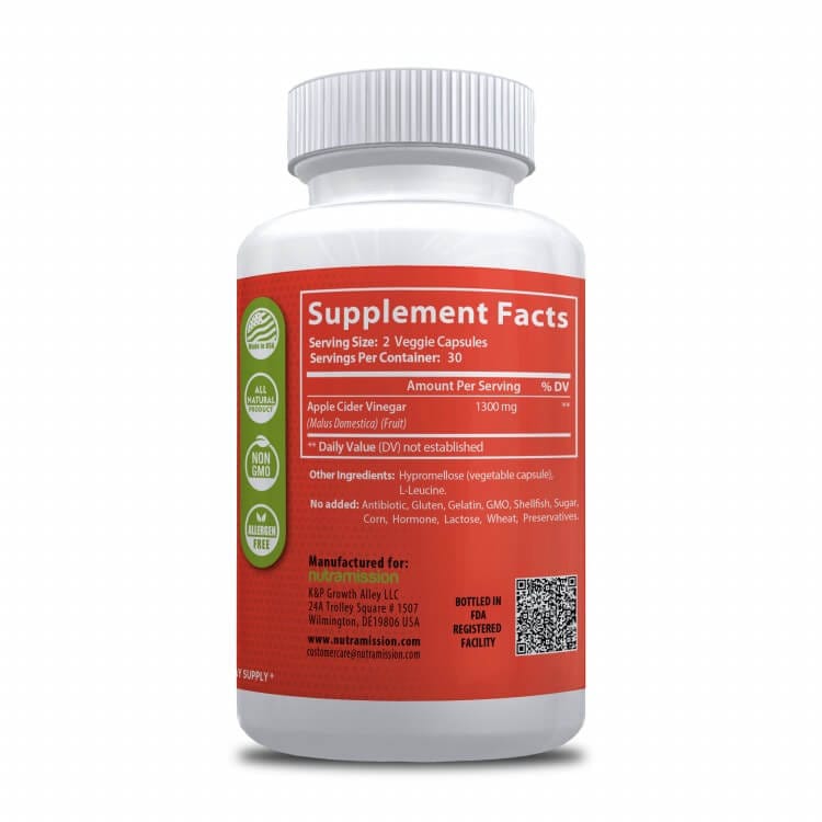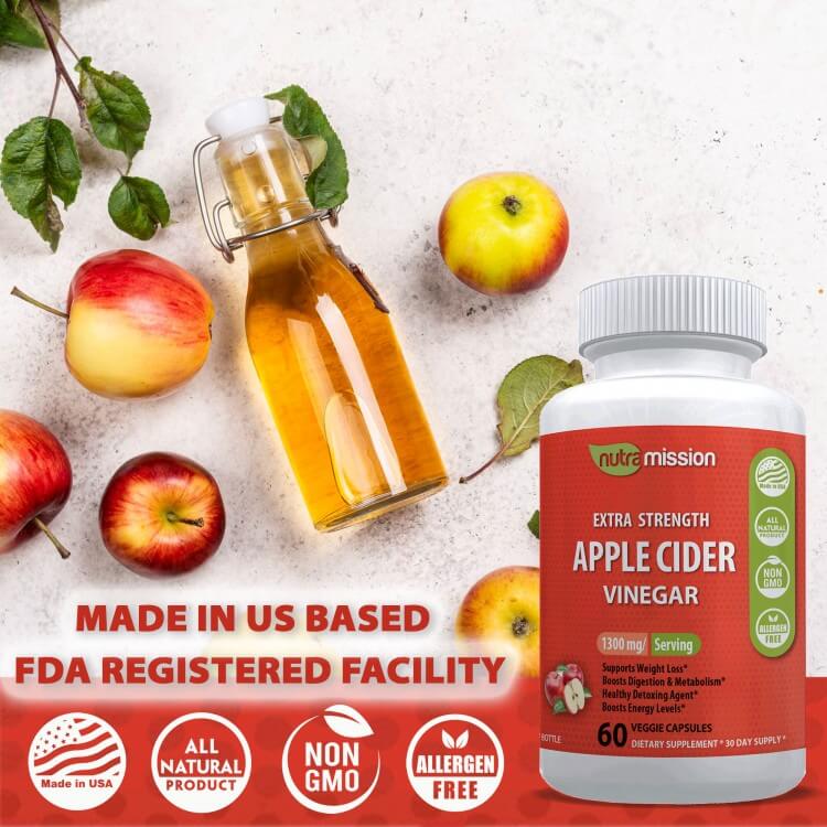 Nutramission Apple Cider Vinegar Capsules 1300 mg has been sourced & manufactured in an FDA registered laboratory following strict quality guidelines.